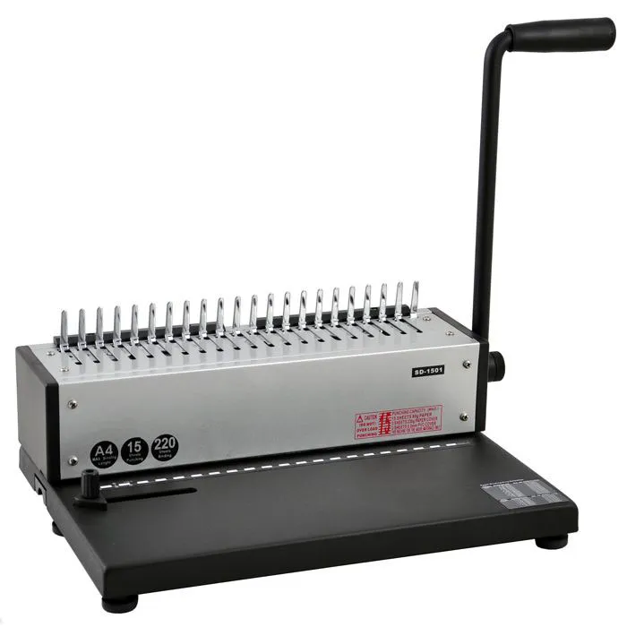 SD-1501 – переплетная машина на пластиковую пружину от компании Rayson. Одна из самых популярных моделей брошюратора, с помощью которой можно переплести до 350 листов бумаги. Отличие от модели SD-1201: более высокая мощность дырокола.