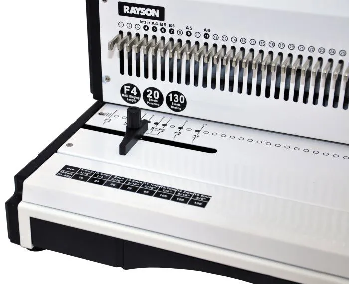 Переплетная машина TD-200R на металлическую пружину от компании Rayson с функцией отключения ножей перфорации. Удобная и надежная модель брошюратора, с помощью которой можно переплести до 120 листов, оснащена ручкой для перфорации отверстий в бумаге и отдельной ручкой для сжатия пружины. TD-200R отличается современным дизайном и возможностью выполнения неограниченной длины переплета благодаря фиксатору сохранения шага пробиваемых отверстий.