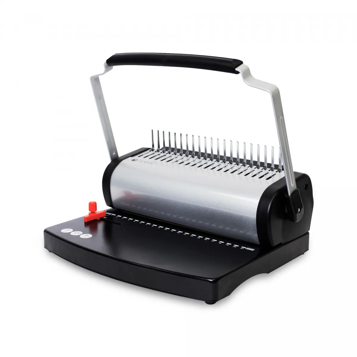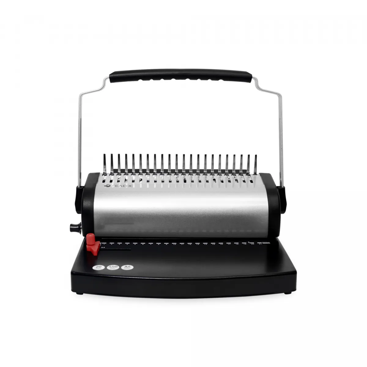 Классический брошюровщик ГЕЛЕОС БП-500-1 имеющий металлическую станину. Есть удобный ограничитель форматов, а также есть трехступенчатая регулировка глубины перфорации. Переплетчик имеет устойчивую конструкцию за счет смещенного центра тяжести и массивной металлической платформы расположенной на резиновых ножках предотвращающих скольжение аппарата.