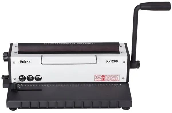Брошюратор Bulros K1200 предназначен скорее для личного использования, нежели для каких-то офисных задач. Этот компактный и эргономичный переплетчик от компании Bulros – идеальный личный помощник, продвигающий Ваш бизнес вперед и вверх. Он может перфорировать одновременно до 12 и переплетать до 120 листов бумаги. Это немного, но вполне соответствует домашнему формату. Отдельный плюс – возможность работать с любыми форматами документов. Кстати, переплетчик Bulros K1200 работает только с металлическими пружинами. Для удобства работы в модели предусмотрен регулятор зажима пружины в зависимости от ее диаметра.