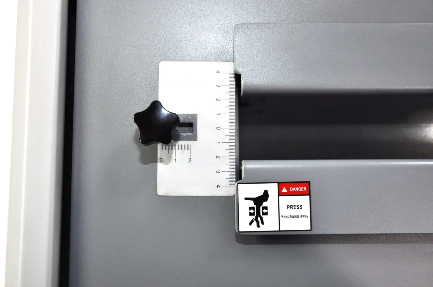 - Неравномерность приклеивания обложки можно быстро отрегулировать с помощь поворота двух рукояток справа;