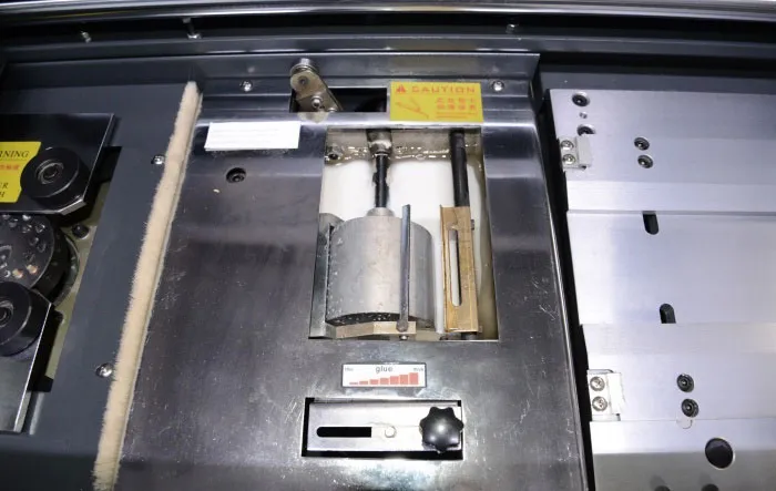 | Дополнительные характеристики | боковая проклейка за счет выдавливания клея с корешка, фрезерование, автоматический обжим обложки, регулировка усилия прижима обложки, регулировка неравномерности прижима обложки - нет, линейное перемещение станции зажима книги, LCD дисплей, отключение фрезы, отключение вентилятора, мешок для сбора бумажной стружки (с кнопкой отключения), счетчик количества сделанных книг, подставка для обложек. |