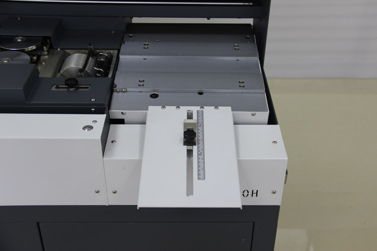 - Положить обложку на стол подачи обложки и закрепить специальными зажимами.
