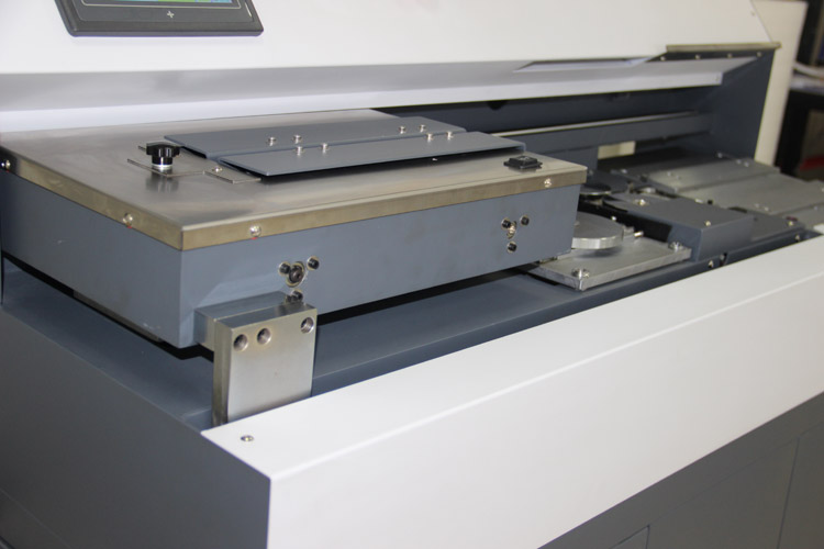 - Проклеенный с торца и по бокам блок помещается в обложку и обжимается с 3-х сторон автоматически. Возможна работа в режиме шаг за шагом: 1. зажим блока, 2. торшонирование с фрезой, очистка блока и нанесение клея на блок, 3. зажим обложки на блок. Возможность подачи блока по выбору с левой или с правой стороны. Встроенный микропроцессор. Большой 7″ сенсорный LCD экран управления. Две раздельные ванны для клея с индивидуальной регулировкой температуры. Регулировка неравномерности прижима обложки. Регулировка температуры, контроль температуры. Фотоэлектрический датчик контроля блока и обложки. Ручной или автоматический зажим и разжим блока, регулировка силы зажима обложки, автоматическое расжатие по истечении установленного времени обжима переплёта. Один ролик для нанесения клея и два ролика с отдельной клеевой ванной для боковой проклейки. Регулировка подачи клея. Блок торшонирования и фрезерования корешка защищен шторками, которые автоматически открываются и закрываются. После прохождения фрезы по корешку блока специальные щетки очищают готовый к проклейке блок от бумажной стружки. Мешок для сбора бумажной стружки. Модель укомплектована тумбой на колёсах.