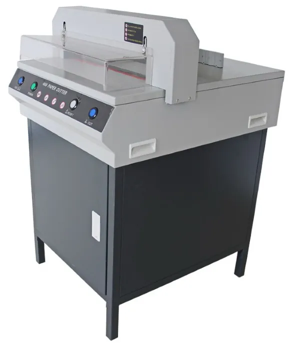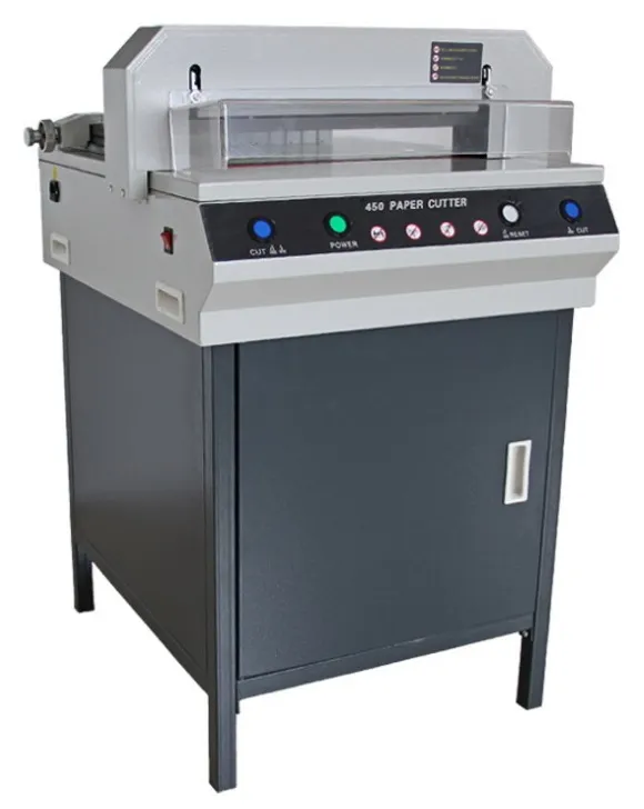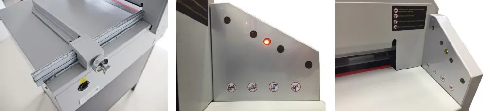 Машина для резания бумаги Bulros 450V+ была создана с учетом всего опыта, накопленного при изготовлении предыдущих продуктов фирмой Bulros. Эту современную, простую в управлении и эффективную модель можно использовать в средних или небольших издательских компаниях и в офисах. Тщательно разработанная конструкция отличается простотой и долговечностью. В составе блоков управления присутствуют усовершенствованные схемы, благодаря которым повышается безопасность и точность резки. Высокотехнологичная интегральная схема цифрового управления повышает эффективность работы. Функция автоматической блокировки ножа при поднятии защитной крышки гарантирует полную безопасность. Затл настраивается мастером вручную. Лезвия при необходимости могут быть быстро заменены на новые. При включении встроенный компьютер запускает автоматическую диагностику резака.