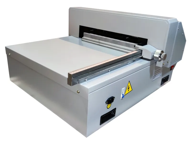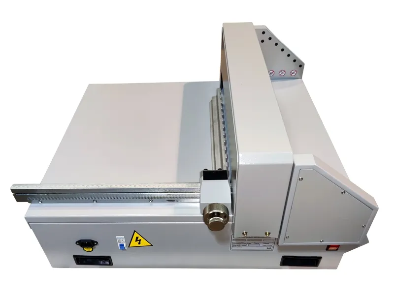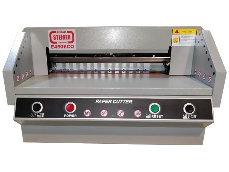 Электрический гильотинный резак для бумаги Steiger E-450 ECO — это компактная гильотина с электрическим приводом ножа и прижима, ручным задним упором в настольном исполнении.