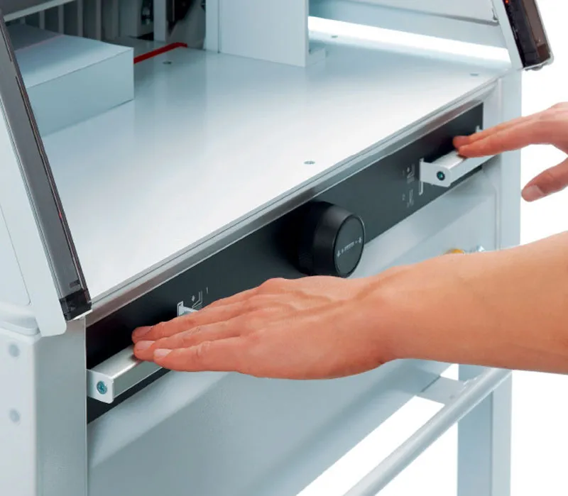 - Электронный потенциометр для ручного позиционирования заднего упора с плавной регулировкой скорости (от очень медленной до очень быстрой).