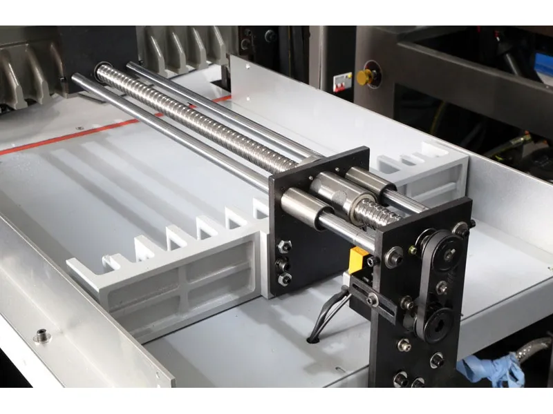 Steiger ET-650 поставляется в стандартной комплектации с напольной металлической станиной (две дверцы и полка внутри), ИК защитным экраном для полноценной защиты оператора от получения травмы рук и пультом управления с цветным сенсорным ЖК дисплеем 7 дюймов с возможностью программирования резака на 100 программ по 21 настройке в каждой программе.