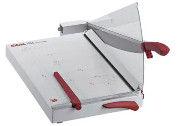 Устройство автоматического прижима стопы обеспечивает комфортабельный рез. Лезвие выполнено из высоколегированной немецкой стали "Solingen steel" с возможностью затачивания. Точные измерительные шкалы с указанием стандартных форматов бумаги, индикатор линии реза на прижимной планке, а также прозрачная зона фиксатора позволяют делать точный рез. Технология "EASY LIFT" - инновационная разработка компании Ideal Krug & Priester GmbH. Механизм "EASY LIFT" представляет собой отжимной рычаг, поднимающий автоматический прижим, обеспечивая удобное и легкое устранение бумаги со стола после выполнения реза.