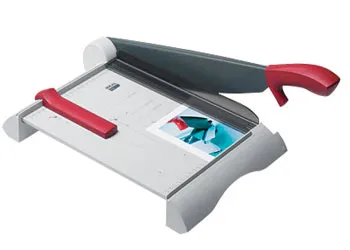 У сабельного резака Ideal 1133 все рабочие детали изготовлены из металла. Прижим резака сделан из прочного материала, прозрачная конструкция которого позволяет контролировать отрезаемую зону бумаги.