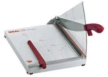 Компактность IDEAL 1134 и режущий механизм с длиной реза 35 см. делают эту модель незаменимой для малых офисов и дома. IDEAL 1134 оснащен контрножом, функционирующим наравне с основным. И тот, и другой выполнены из высоколегированной немецкой стали "Solingen steel" с возможностью затачивания. Точные измерительные шкалы с указанием стандартных форматов бумаги, индикатор линии реза на прижимной планке, а также прозрачная зона фиксатора позволяют делать точный рез. Прижим ручной и для фиксации стопы бумаги достаточно лишь легкого давления пальцами.