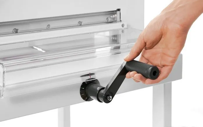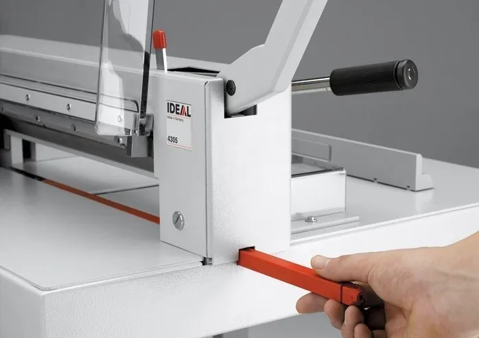 Ideal 4305 – это прекрасное решение для оперативной полиграфии в виде механического резака гильотинного типа. Производительный гильотинный резак с длиной реза 430 мм способен одновременно резать 500 страниц (70 г/м2) или брошюру толщиной до 40 мм.