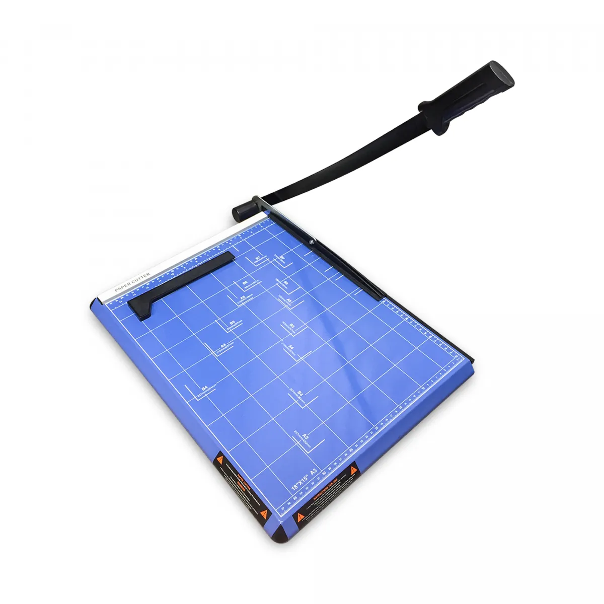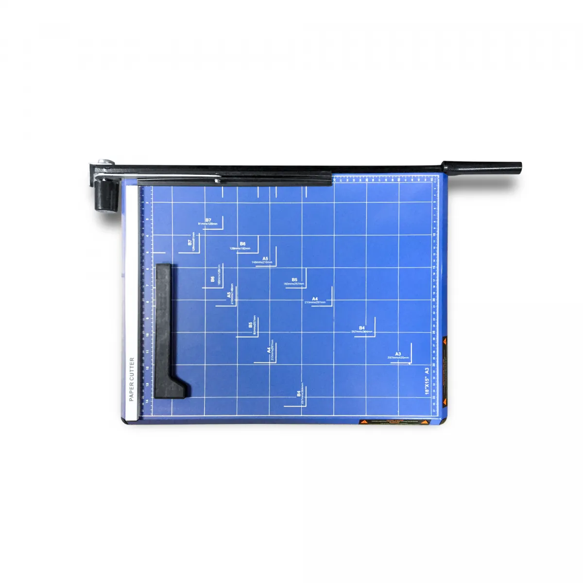 Сабельный резак с градуировкой рабочей поверхности позволяет работать с форматами А3 и меньше.