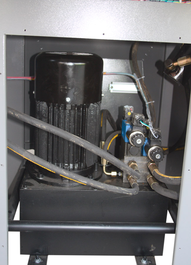 - Модель имеет гидравлический привод реза и прижима, независимый (отдельный) прижим с помощью педали.