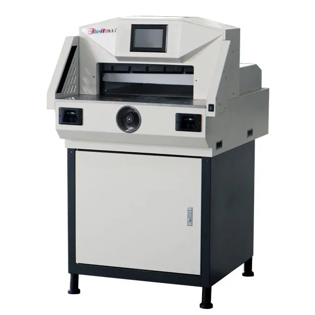 | Дополнительные характеристики | цельнометаллическая рама, точность позиционирования 0,3 мм, электрический привод затла, инфракрасная защита от попадания посторонних предметов в рабочую зону реза, регулировка силы прижима - есть, 30 уровней, независимые системы прижима и реза, подпружиненные шарики на рабочем столе для перемещения стопы бумаги, полноцветный сенсорный LCD дисплей, возможность автоматической выдачи бумаги после реза, регулировка ножек тумбочки по высоте. |