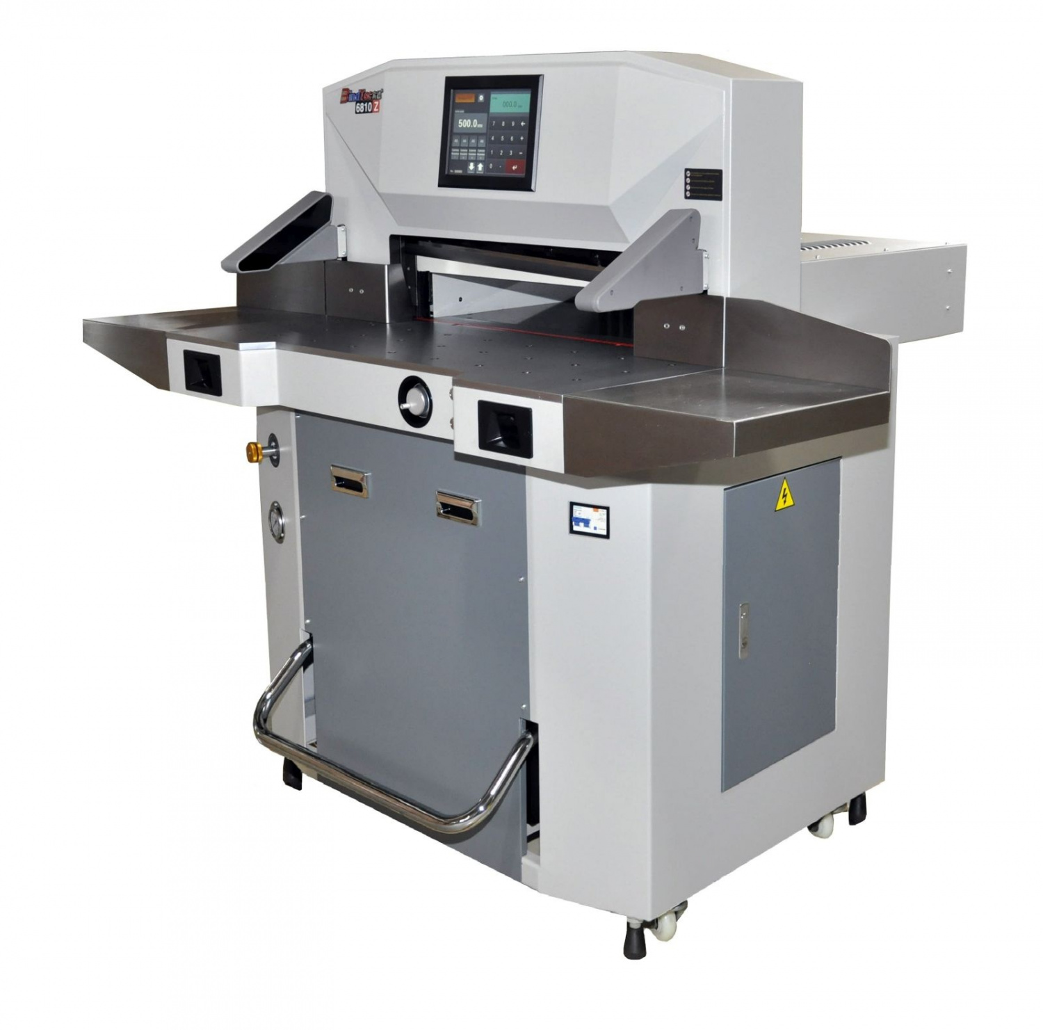 BindTec 6810Z предназначена для средних и крупных типографий с большим объемом работ. Эта модель оснащается расширенным рабочим столом для удобства работы со стопой бумаги, причем расширение рабочего стола - это две детали из металла без какой-либо электроники, то есть вы можете использовать их или не использовать, при этом не надо переподсоединять системы защиты рук оператора, что долго, и требует определенных знаний и умений.