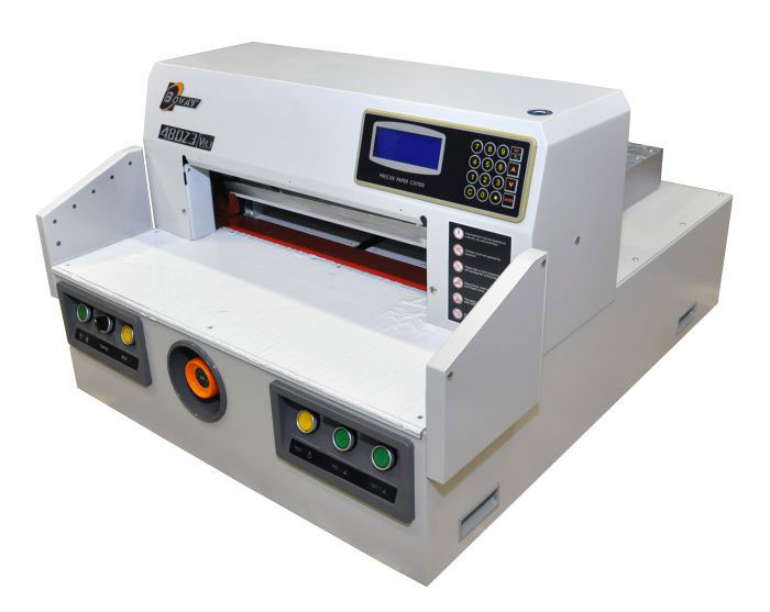 BW-480Z3 это достаточно компактная электрическая гильотина с возможностью программирования от компании Boway. У этой модели, как и у всех электрических гильотин, есть прижим бумаги с электроприводом и регулировкой усилия, а так же возможность автоматической выдачи бумаги после реза. BW-480Z3 будет востребована в том случае, если Вам нет необходимости загружать работой более мощную гильотину, но в тоже время необходимо сделать много резов бумажной продукции небольшого формата. BW-480Z3 мощная и функциональная гильотина для крупных и средних типографий.
