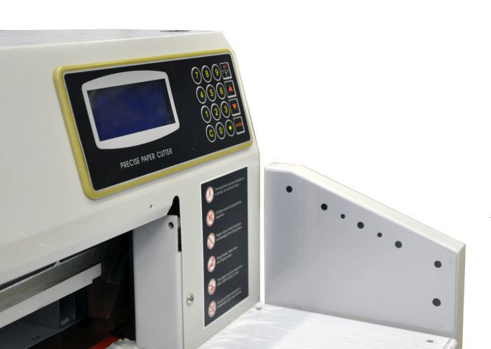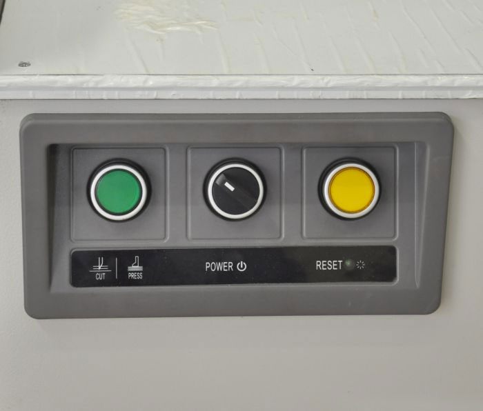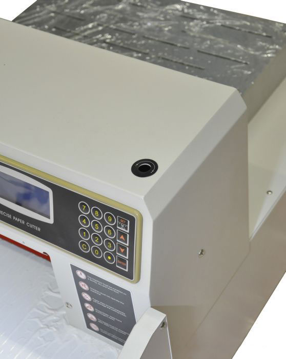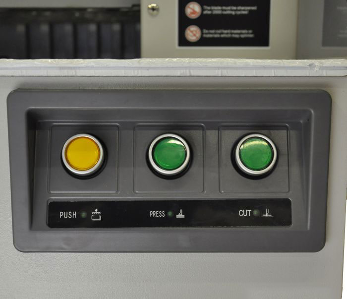 | Дополнительные характеристики | цельнометаллическая рама, точность позиционирования 0,2 мм, электрический привод затла, инфракрасная защита от попадания посторонних предметов в рабочую зону реза, регулировка силы прижима - 9 уровней, независимая система прижима и реза, возможность автоматической выдачи бумаги после реза, пульт с LCD дисплеем для программирования реза, самотестирование и диагностика ошибок. |