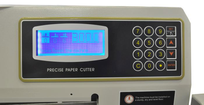 - Микропроцессорная система программирования гильотины на разные размеры реза.