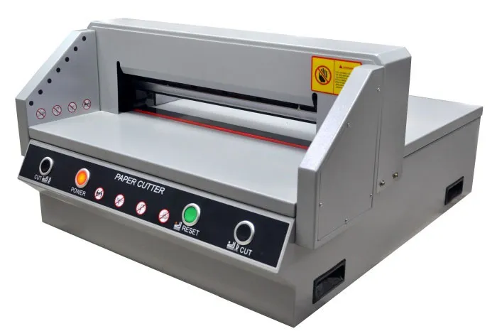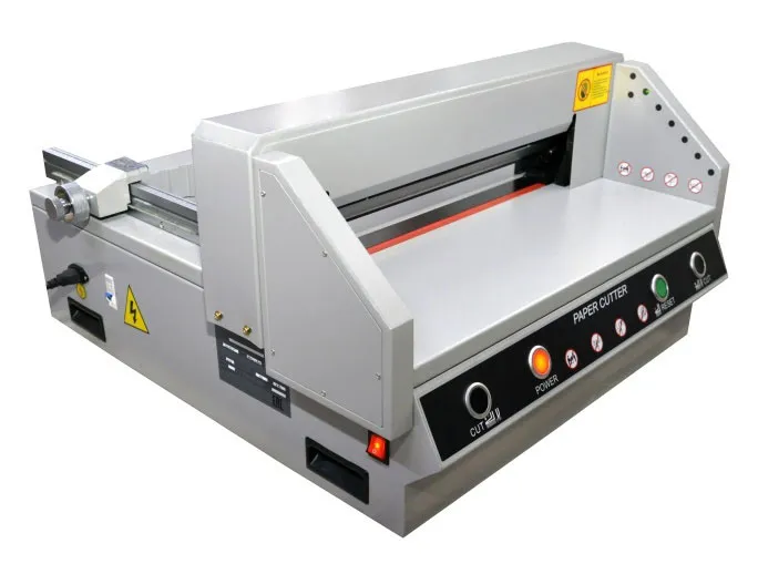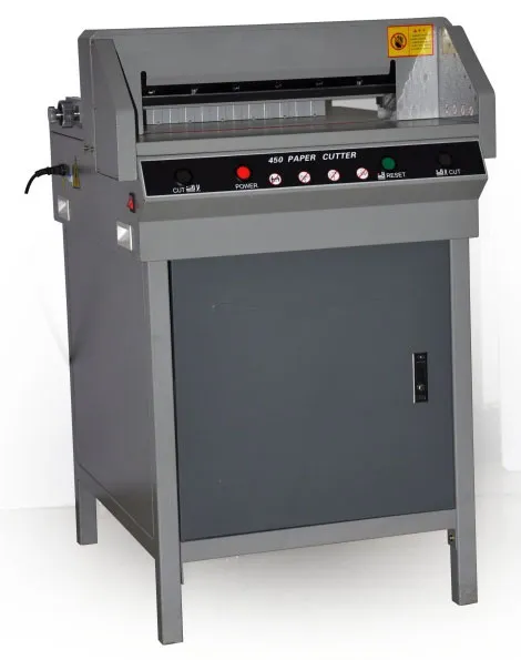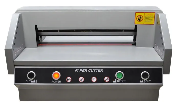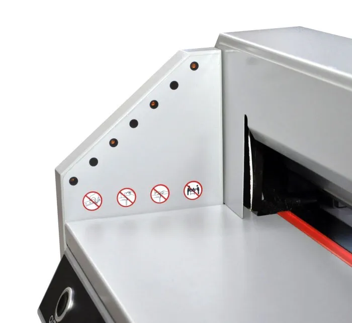 FRONT G450V+ - Очень удачная модель недорогой гильотины с механическим приводом лезвия (электромотор + редуктор) для использования как вспомогательной, для подрезки уже готовой продукции. Модель имеет все необходимые современные системы блокировки для защиты рук оператора. Электроники минимум, увеличена толщина металла у ответственных деталей.