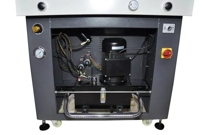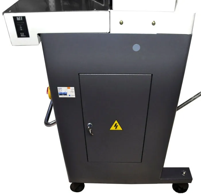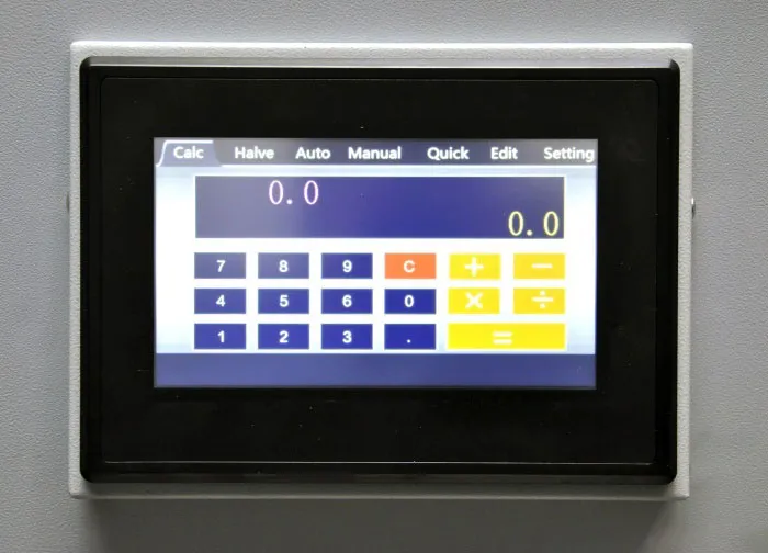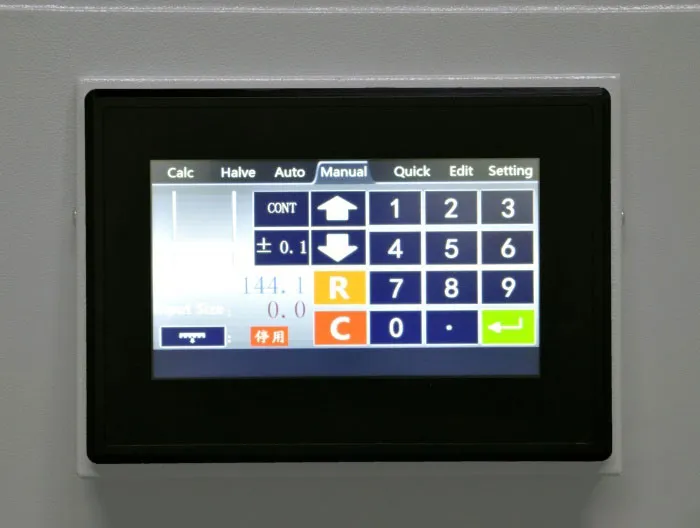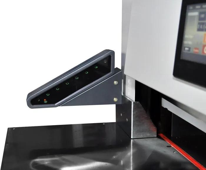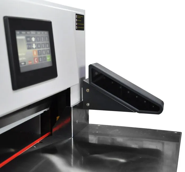 | Дополнительные характеристики | цельнометаллическая рама, точность позиционирования 0,3 мм, электрический привод затла, инфракрасная защита от попадания посторонних предметов в рабочую зону реза, регулировка силы прижима от 4 mPA до 8 mPA, независимая система прижима и реза, полноцветный сенсорный LCD дисплей, возможность автоматической выдачи бумаги после реза, педаль предварительного прижима бумаги. |