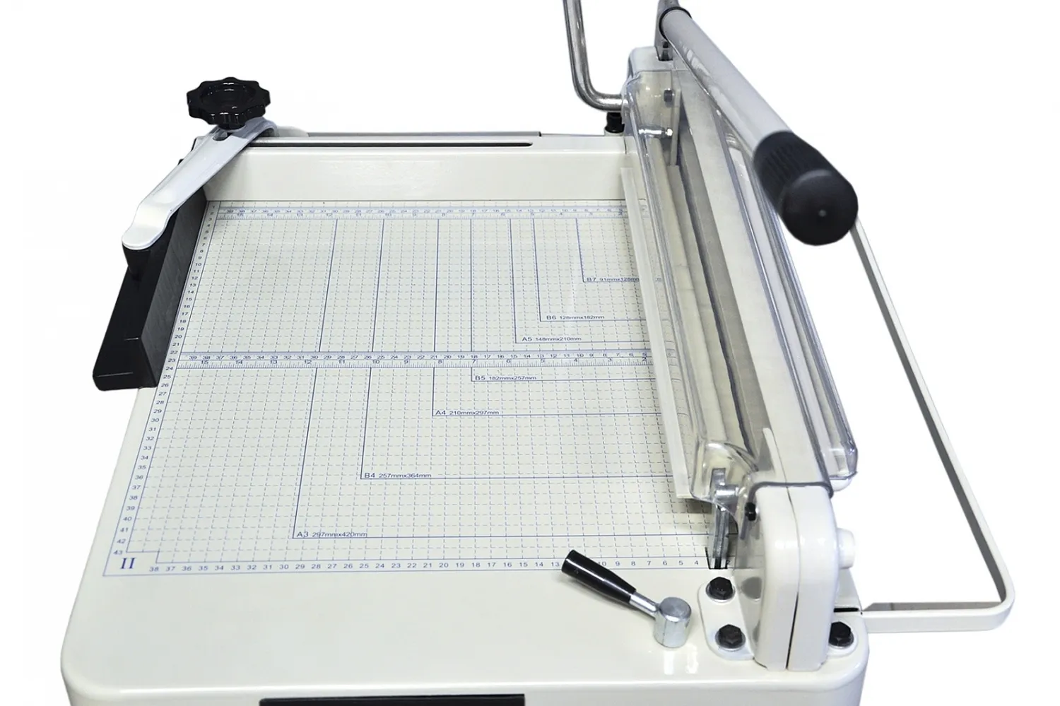 Настольный резак гильотиного типа YG-868A3 с цельным металлическим корпусом и длиной реза до 430 мм (формат А3) – оптимальное решение для типографий и предпринимателей. YG-868A3 используется для резки различных бумажных бланков, визиток и фотобумаги. Отличное соотношение цена/качество. Оснащен ножом с высоколегированной вставкой для точного и быстрого реза. Зажим стопы производится с помощью специальной ручки - быстродействующего прижима, что позволяет сделать качественный рез стопы бумаги до 35 мм высотой. Для удобства, на рабочий стол нанесена разметка форматов.