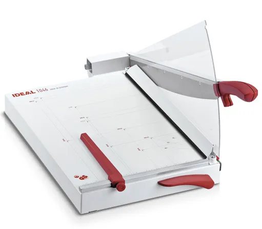Механический сабельный резак IDEAL 1046 - инновационный офисный резак сабельного типа с автоматическим прижимом стопы и механизмом "EASY LIFT". Модель IDEAL 1046 обладает длиной реза 46 см и возможностью одновременного реза. Устройство автоматического прижима стопы обеспечивает комфортабельный рез.