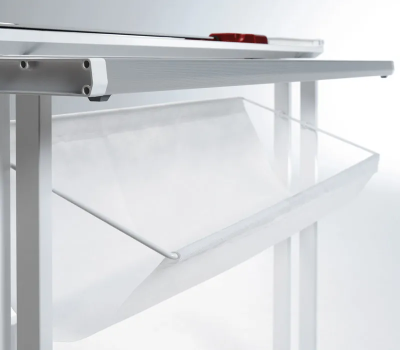 Щелевые боковые конштейны из ударопрочного ABS пластика предназначены для удобства работы с широкоформатными материалами. Измерительные шкалы, расположенные с двух сторон рабочего стола, позволяют точно контролировать параллельность реза.