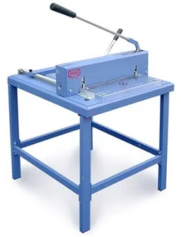 В стандартную комплектацию гильотины Steiger М-4320 входит эргономичный стол-подставка, что легко решает проблему размещения резака даже в небольших помещениях. Твердость стали ножа HRC61±1.