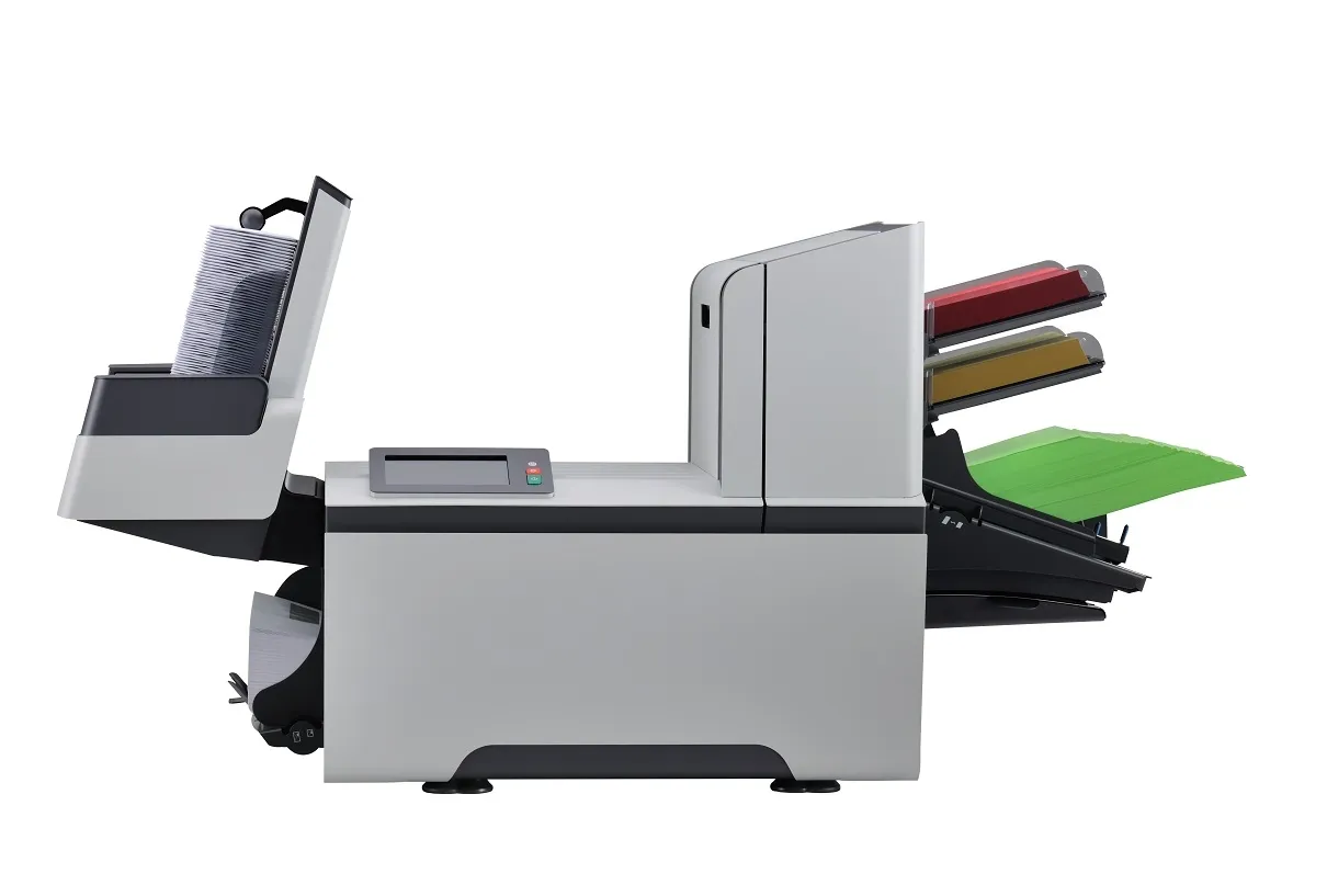 - Комплектация с вертикальным лотком для готовых конвертов большой емкости.