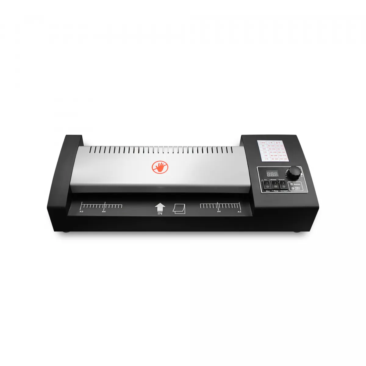 Аппарат оснащен 4-мя валами, что обеспечивает надежное и качественное ламинирование материала. Модель позволяет работать с диапазоном пленок от 60 до 250 мкм.