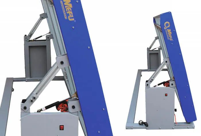 Новая конструкция рабочего стола позволяет наклонять его практически на 80°, что существенно облегчает его транспортировку и занос в помещение через дверные проемы.