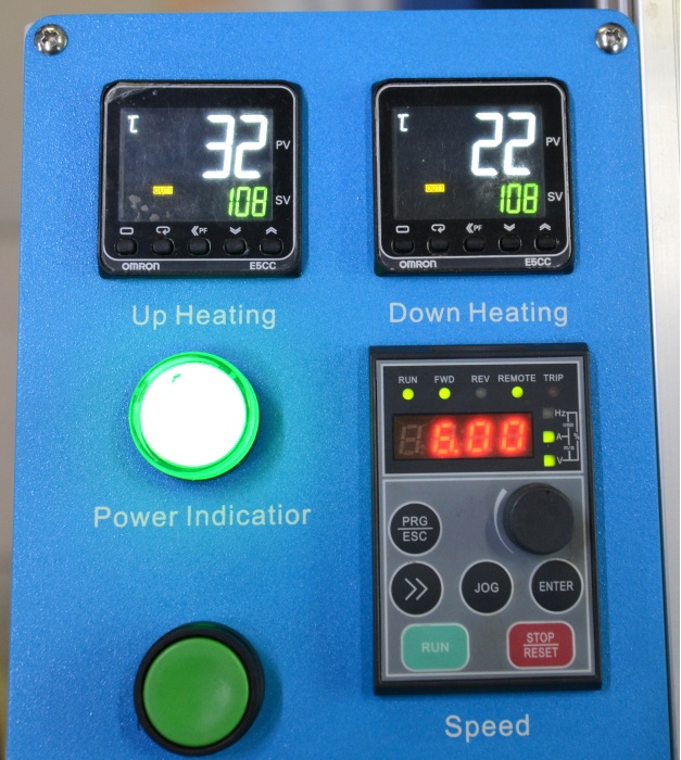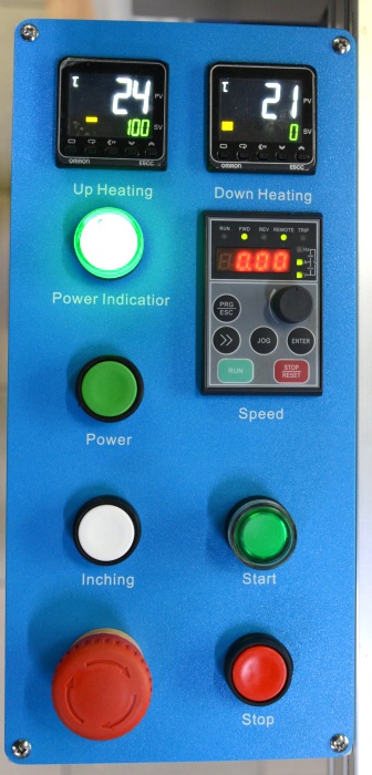 - Для управления ламинатором используются новая линейка контроллеров (E5CC) температуры компании «OMRON», а для управления двигателем частотный преобразователь «Shenzhen ALPHA Inverter Co., Ltd»;