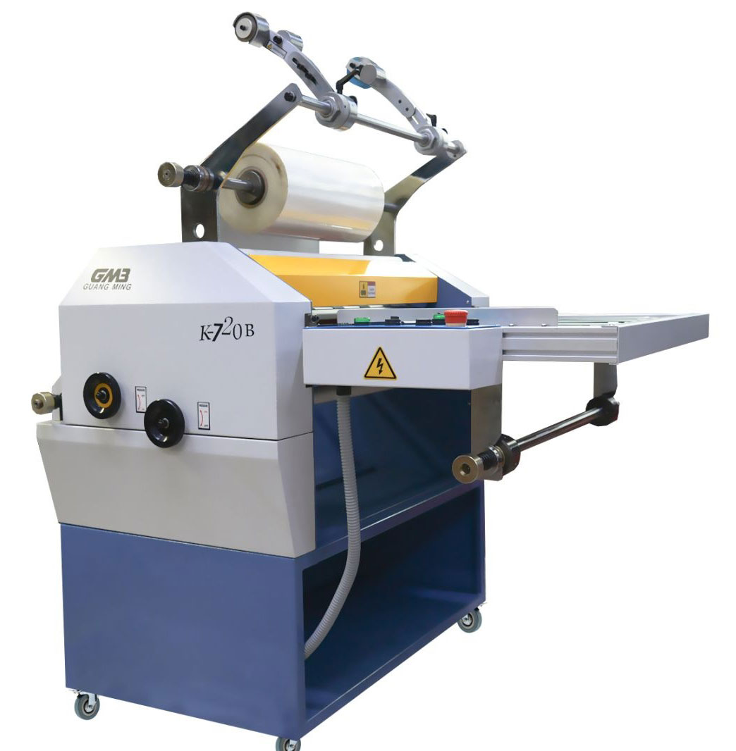 K-720B – новая модель профессионального высокоскоростного ламинатора пришедшая на смену модели KDFM-720 (оба производятся Wnt Company). Для ламинирования используются две пары металлических и силиконовых валов, может делать как одностороннее, так и двухстороннее ламинирование. Высокая скорость работы позволяет ламинировать большие объемы печатной продукции.