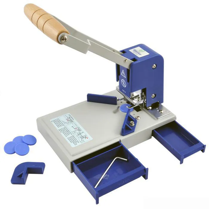 Профессиональный многофункциональный обрезчик углов AD-1. В базовой комплектации он поставляется с ножом базового радиусом 6 мм, обрезчик позволяет придать элегантный и презентабельный вид типографской продукции, визитке или календарю. AD-1 имеет полностью металлический корпус, удобную большую деревянную ручку и надежное основание. AD-1 просто незаменим для типографий. За раз он способен обрезать до 100 листов (80 г/м2), а дополнительные ножи (приобретаются отдельно) позволят не только разнообразить радиус обрезки углов (базовые радиусы 3,5 и 10 мм), но и произвести прямой срез угла (9, 12 мм), пробить круглое отверстие (диаметр 6 мм) и даже произвести вырубку под ригель. В последнем случае для удобства позиционирования бумаги рекомендуется приобрести специальную линейку. AD-1 сделан на Тайване.