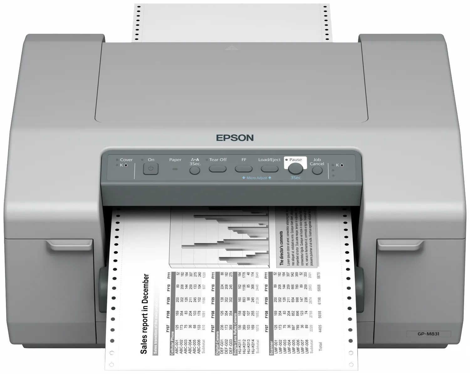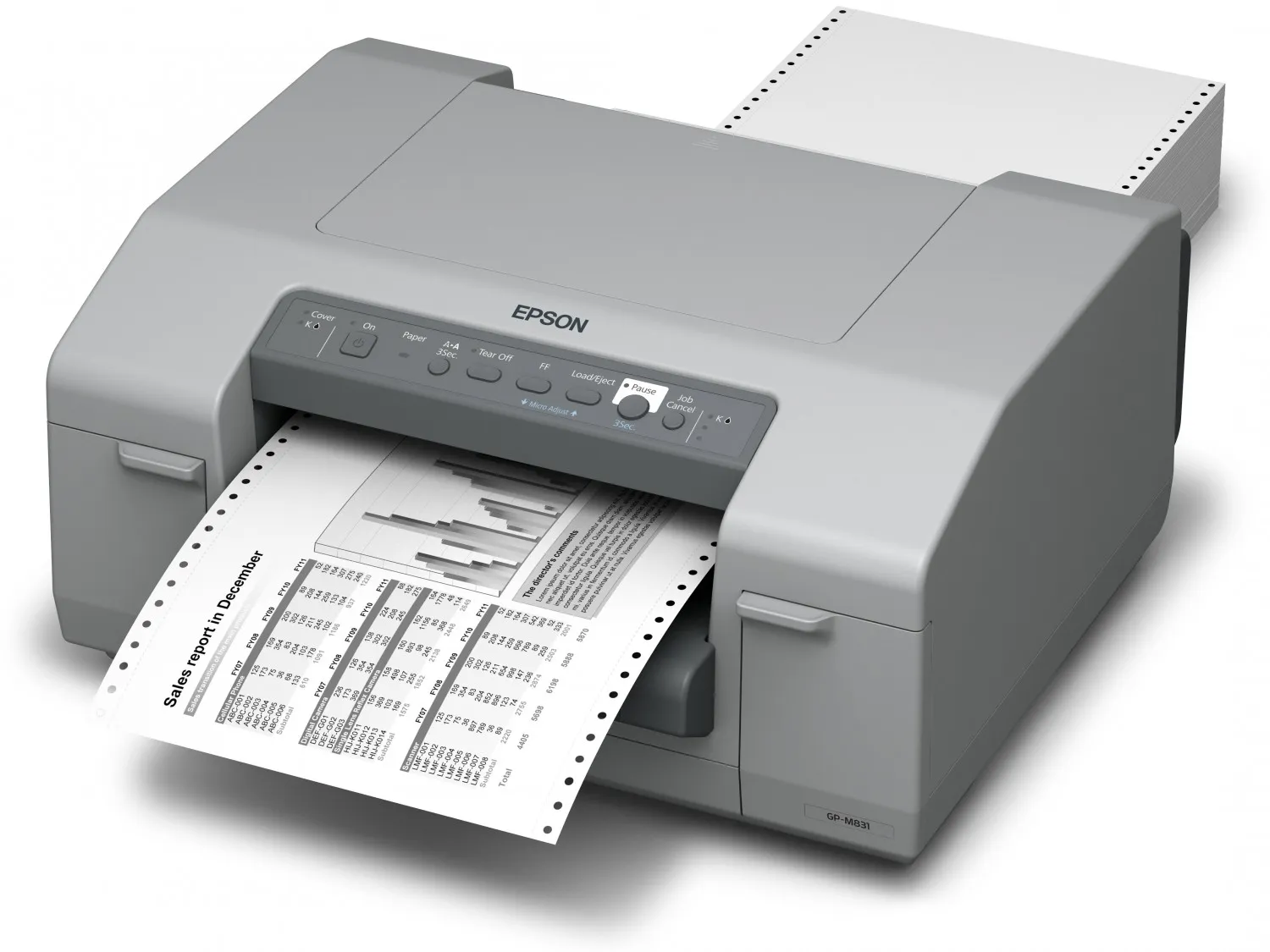 GP-M831 имеет прочную конструкцию и рассчитан на работу в больших объемах и с высокой производительностью в течение пяти лет. Запатентованная технология Epson защищает сопла печатающих головок от пыли, что делает GP-M831 подходящим для работы в сложных условиях.