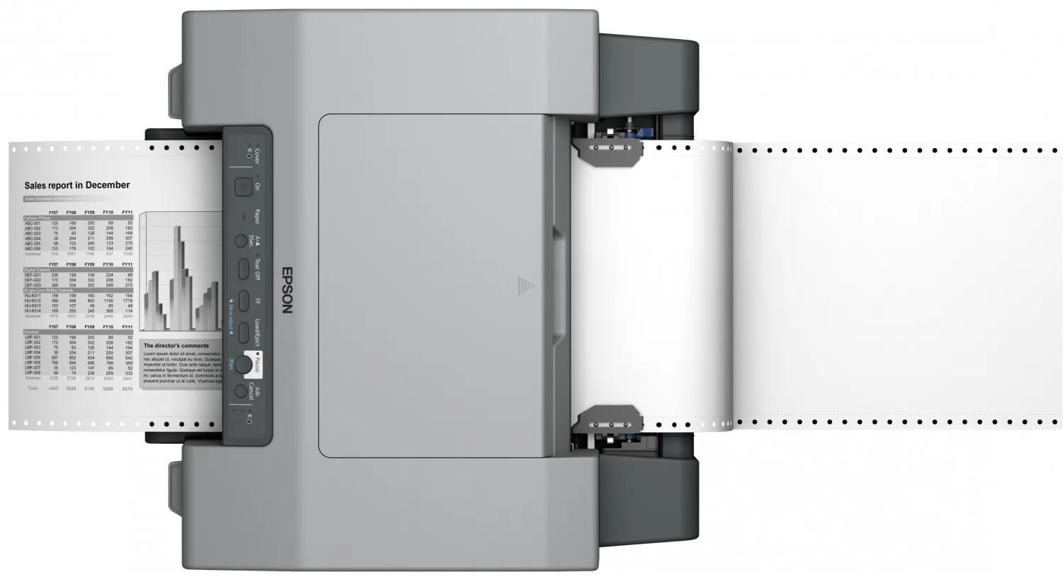 Этот прочный монохромный струйный принтер с системой подачи перфорированной бумаги сочетает в себе лучшие черты матричных и струйных печатающих устройств.