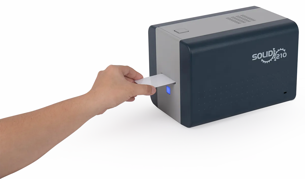 SOLID-210S позволяет осуществлять прямую одностороннюю цветную или одноцветную печать прямо на заготовках карт.
