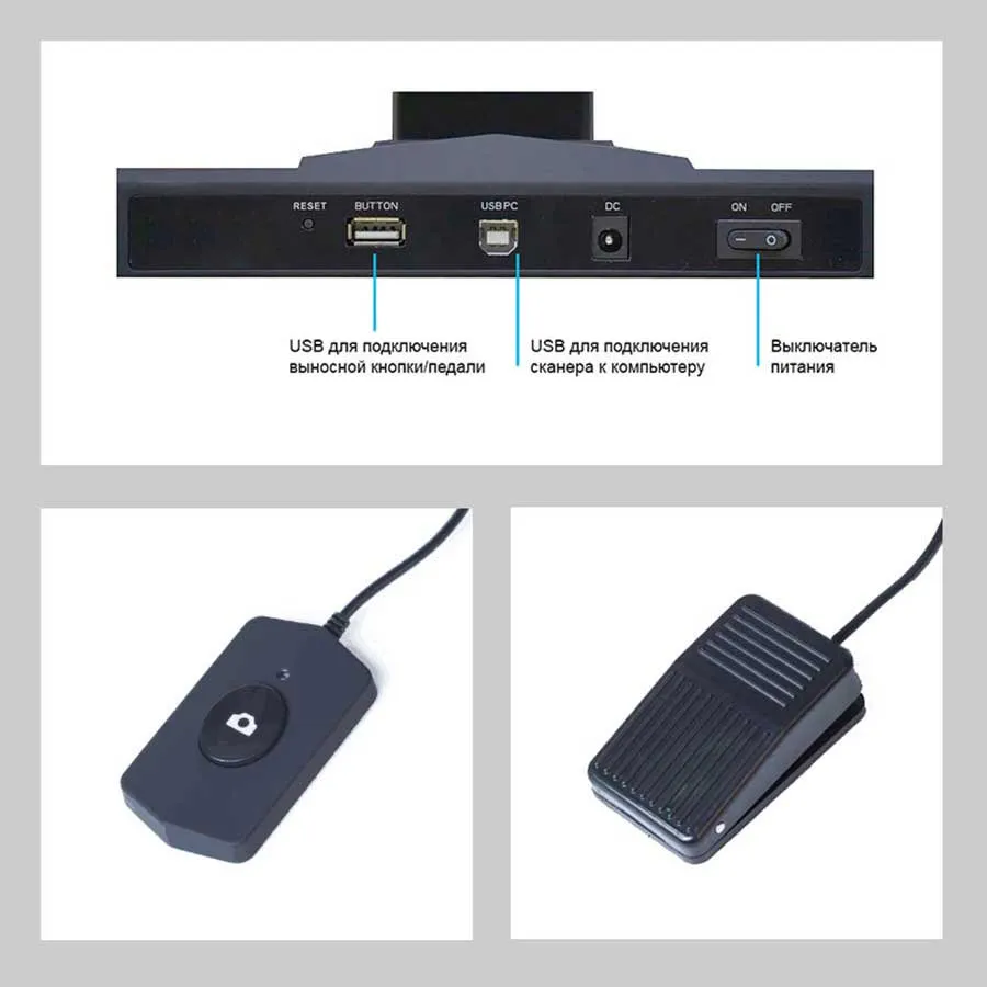 | Кнопка сканирования | На панели управления + выносная кнопка и ножная педаль (USB) |