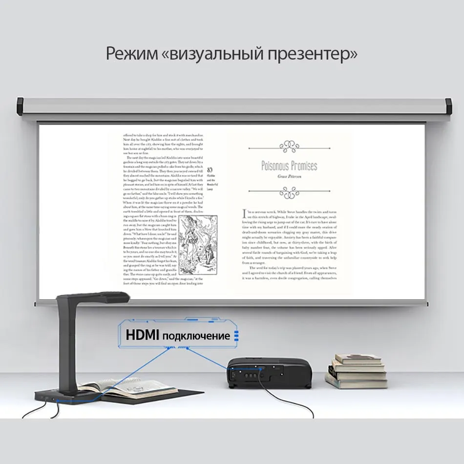 | Режимы работы | Сканирование (подключение к ПК по USB) Презентация (просмотр на внешнем экране по HDMI) |