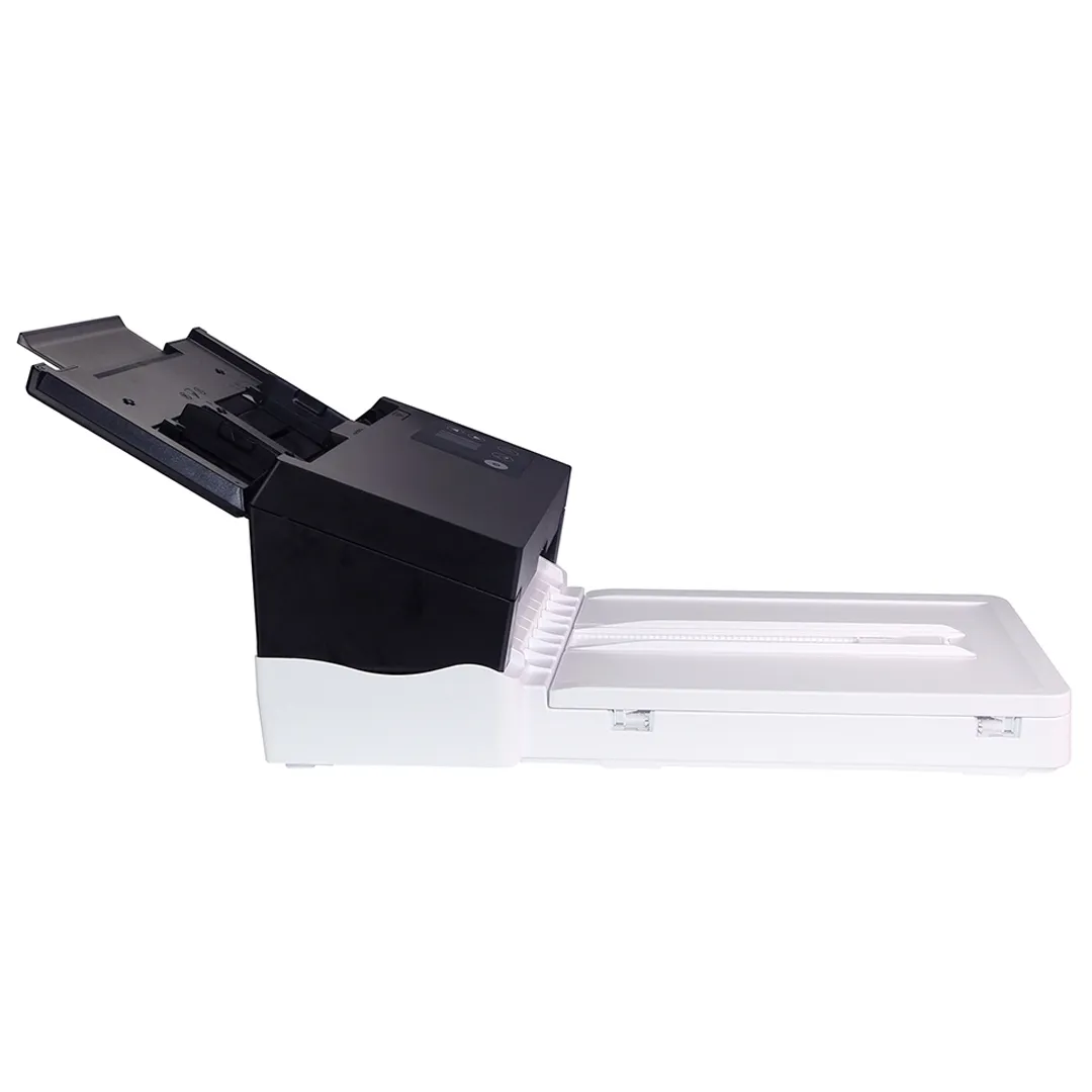 Дуплексный сканер для документов и карточек. Благодаря передовой технологии прямого прохождения бумаги и технологии обработки изображений можно сканировать смешанные пакеты документов разного размера и веса, соответствующим образом обрезать их, выправлять перекосы и готовить к использованию. Размер сканирования позволяет использовать бумагу от чеков 50×50 мм до деловых документов 242×356 мм. Устройство автоматической подачи документов также достаточно прочное, чтобы подавать бумагу плотностью до 413 г/м² и жесткие карты с тиснением, такие как удостоверения личности, кредитные карты, водительские права и карты медицинского страхования, толщиной до 1,25 мм.