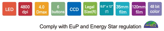 Разрешение 4800 x 9600 dpi, диапазон оптических плотностей 4,0 Dmax