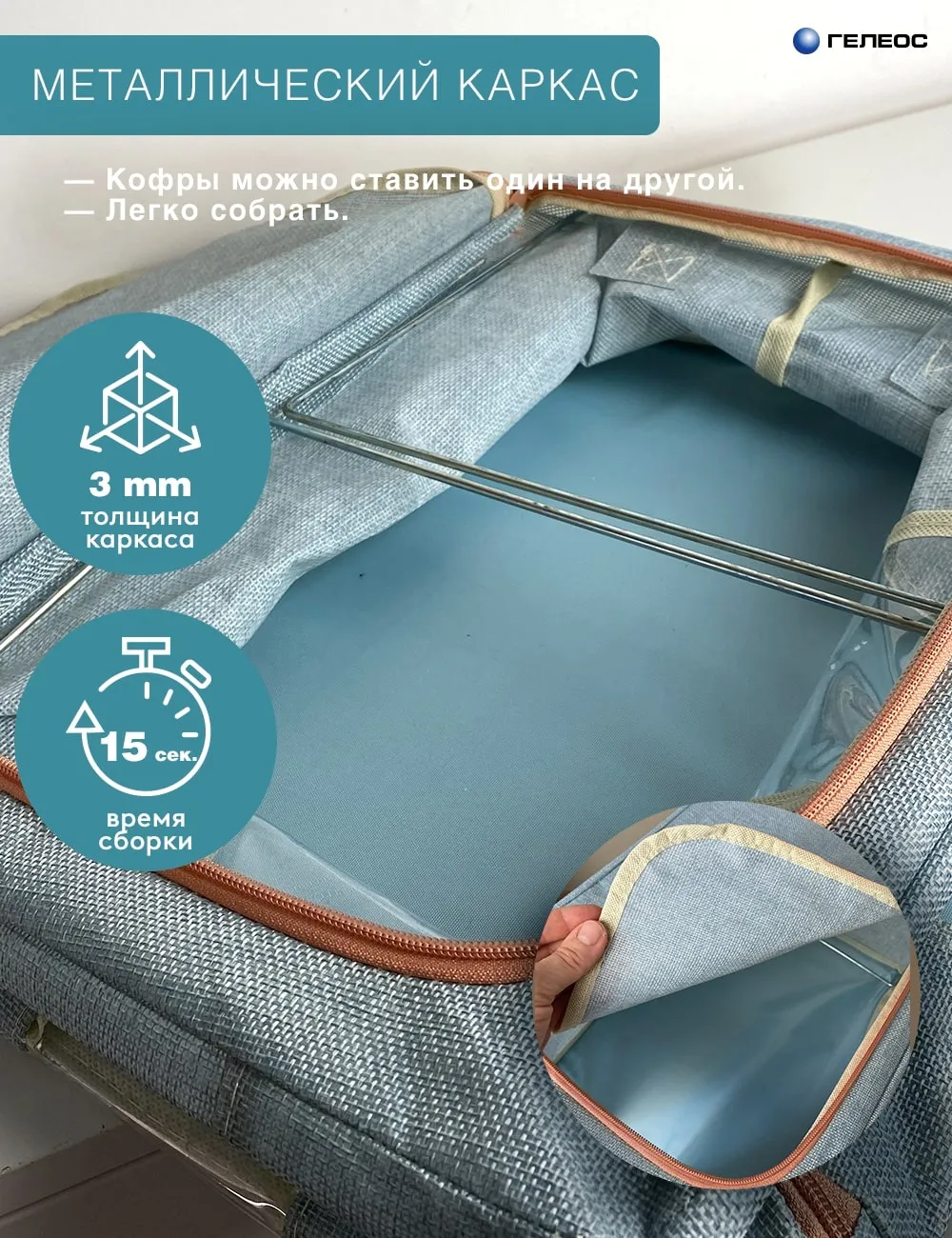 Складной кофр серии ГЕЛЕОС ОКСФОРД имеет металлический каркас и хорошо держит форму, решает задачи организации пространства и хранения вещей. Серия выполнена из ткани ОКСФОРД под рогожку крупного плетения, которая применяется при производстве сумок, одежды и обуви для экстремальных условий. Поэтому для кофров ГЕЛЕОС этой серии характерны высокая прочность, износостойкость, грязеустойчивость, водоотталкивание, термоустойчивость и простота ухода. Короба имеют прозрачные окошки для лёгкого поиска нужных вещей, молнии с двумя замками для быстрого доступа, а также надёжные ручки для перемещения. Удобные кармашки для подписи. Подходят для хранения сезонных вещей, белья, книг и других предметов обихода. Возможно использовать для хранения детских игрушек. Места расположения: прихожая, гостиная, детская, ванная, спальня, кладовая и игровая комнаты. Предназначены для шкафов, антресолей, полок, комодов, стеллажей.