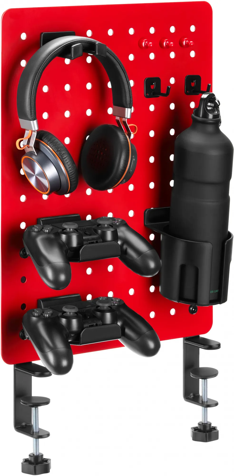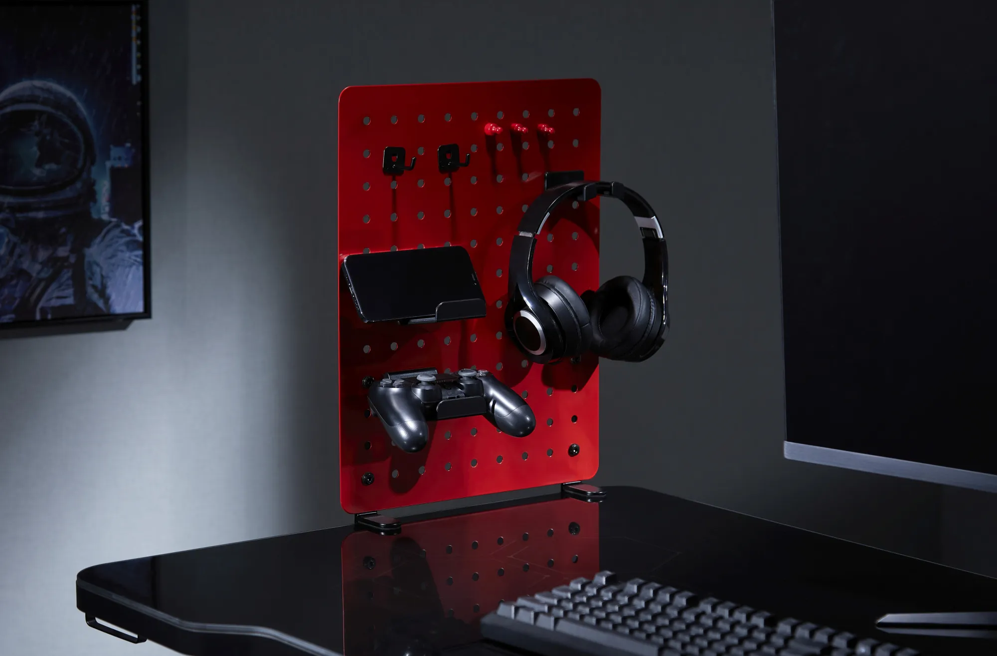 - Аксессуары в комплекте: крючок для наушников/гарнитуры, два крючка для геймпада два крючка для мелочей, подстаканник (в том числе для кружки с ручкой), 4 магнита