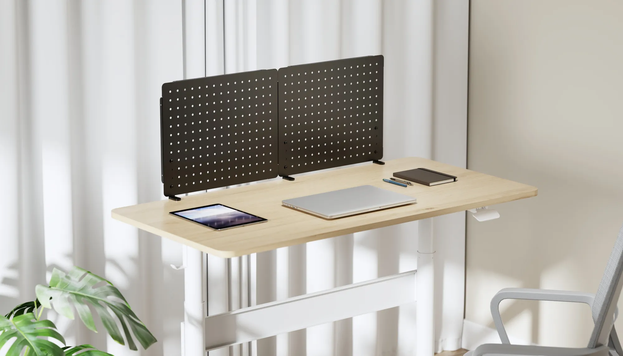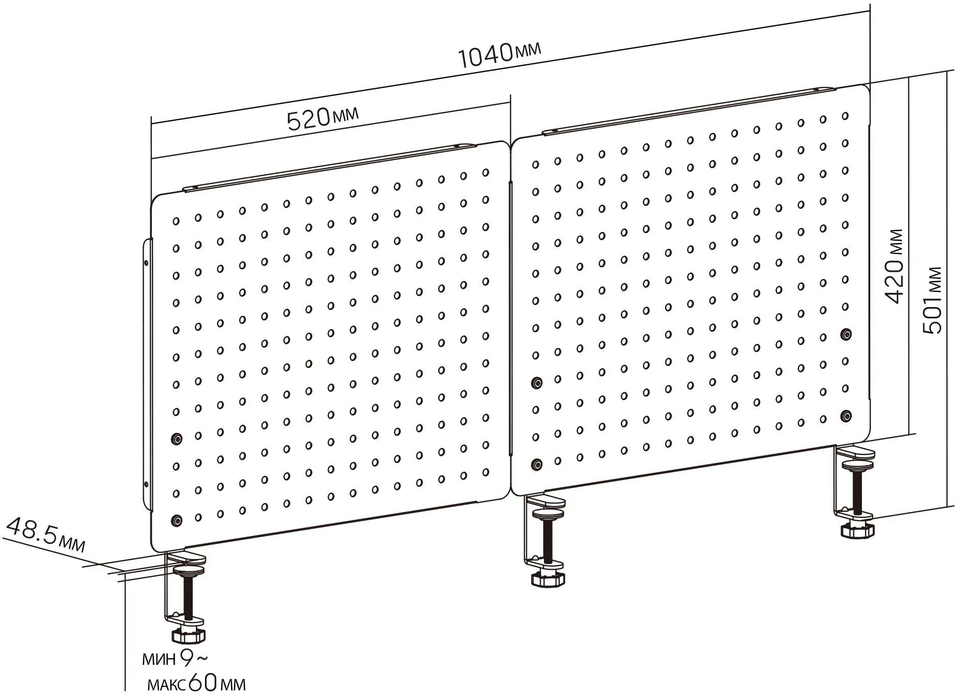 - Двойная перфорированная панель на струбцине для организации рабочего пространства на столе, цвет черный + черный