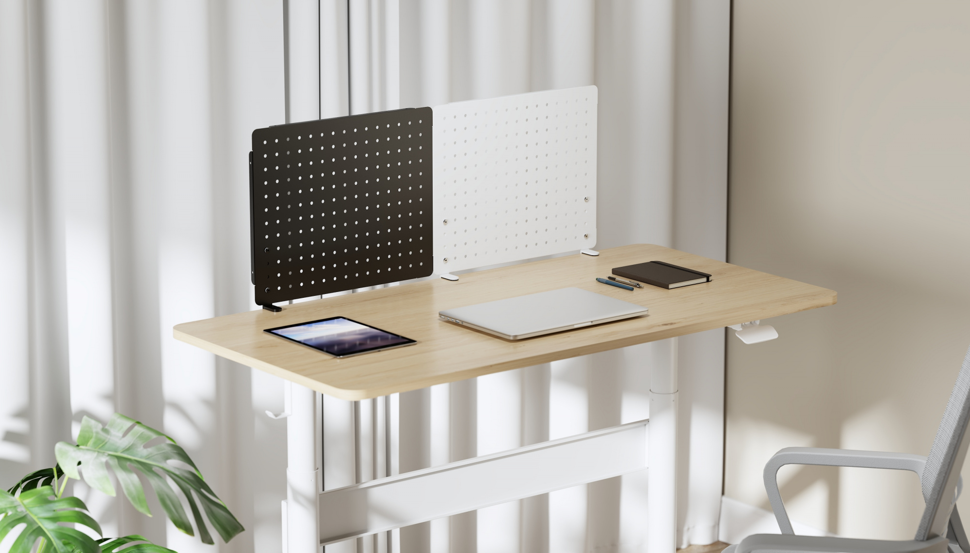 - Двойная перфорированная панель на струбцине для организации рабочего пространства на столе, цвет черный + белый