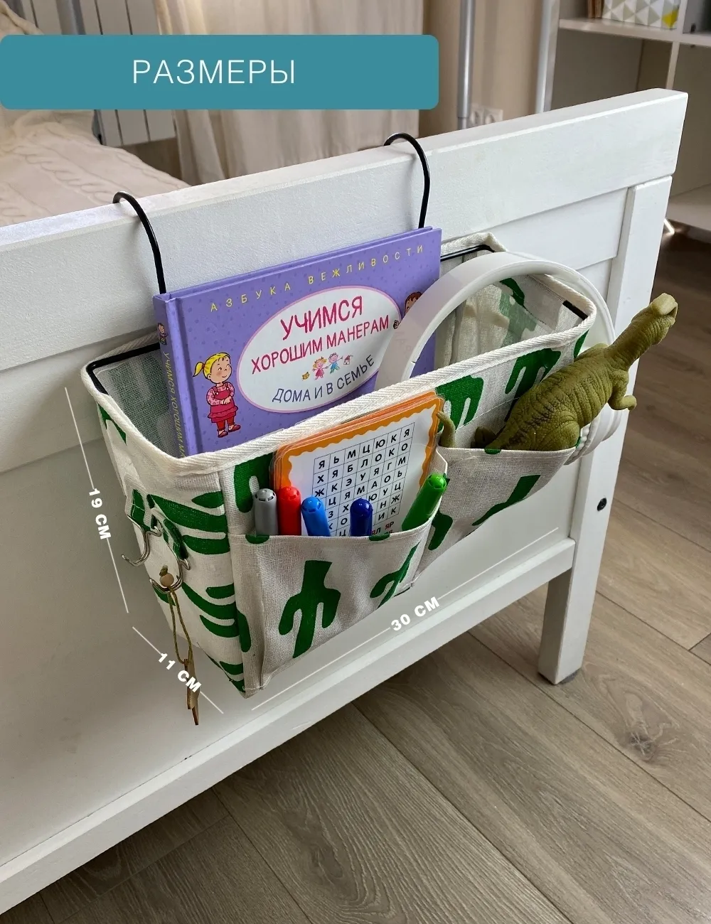 Подвесной органайзер ГЕЛЕОС для кровати, органайзер для детской комнаты – это удобное и практичное решение. Изготовлен из качественного тентового материала Оксфорд. Это качественный и экологичный материал без запаха. Металлическое крепление позволяет повесить органайзер на детскую кроватку, держать детские бутылочки, памперсы, салфетки, разную мелочь. А также для кровати и хранить пульты, журналы, очки, смартфоны, наушники и прочее. Размер 30х11х19 см. Прикроватный органайзер изготовлен из прочной ткани на металлическом каркасе, что делает конструкцию надёжной и удобной в использовании. Каркас крепится на 4 липучки внутри органайзера. Служит как карман на кроватку, органайзер для хранения вещей, органайзер для дома, органайзер для канцелярии, органайзер для косметики. Органайзер с карманами вместительный, его можно подарить на день рождения ребёнка, отличный подарок.