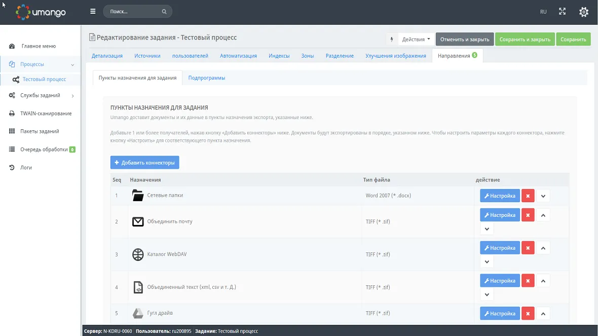 Неограниченное количество экспортных направлений на каждый рабочий процесс ✓