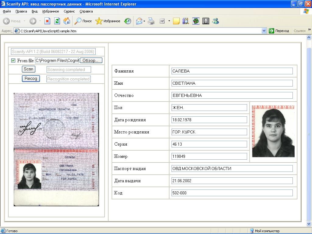 Cognitive Passport API встраивается непосредственно в корпоративную информационную систему или приложение и позволяет реализовать автоматизированный ввод документов в рамках привычного пользовательского интерфейса.