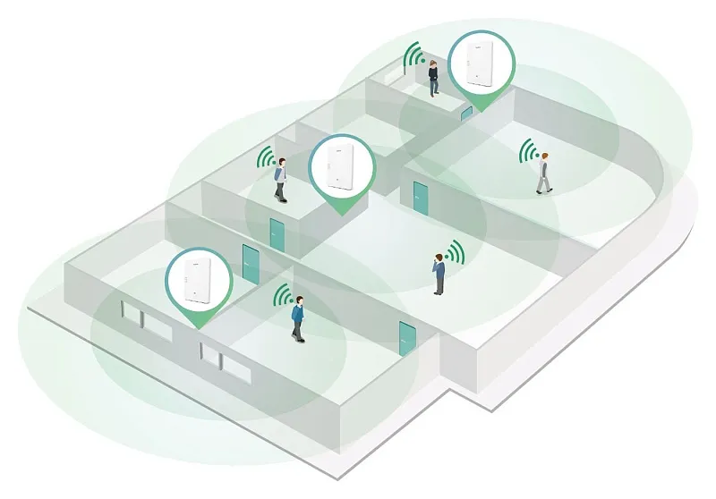 | Зона покрытия внутри помещения: 20 м ~ 50 м | |